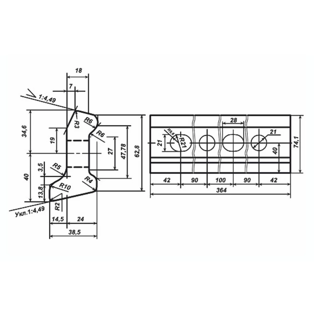 ЖД стыковая накладка Р-33 используется в качестве болтового рельсового скрепления. Предназначена для скрепления шейки железнодорожных магистральных рельс Р33 с помощью стыкового болта М22х115.
